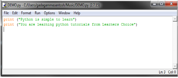 For multiple lines of commands, write multiple commands in the new file. By click on File Menu and create New File save that file with .py extension.