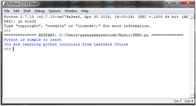 While installing, python is come up with IDLE (GUI). That means it is GUI for python developers and full form of IDLE is integrated development and learning environment. It works for both multiple line commands and single line commands execution.